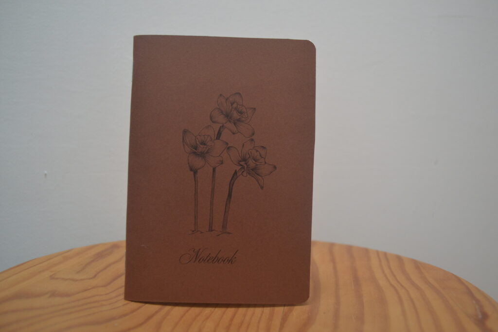 Light and simple notebooks bound with covers featuring my own illustrations. Each notebook has twenty blank pages.